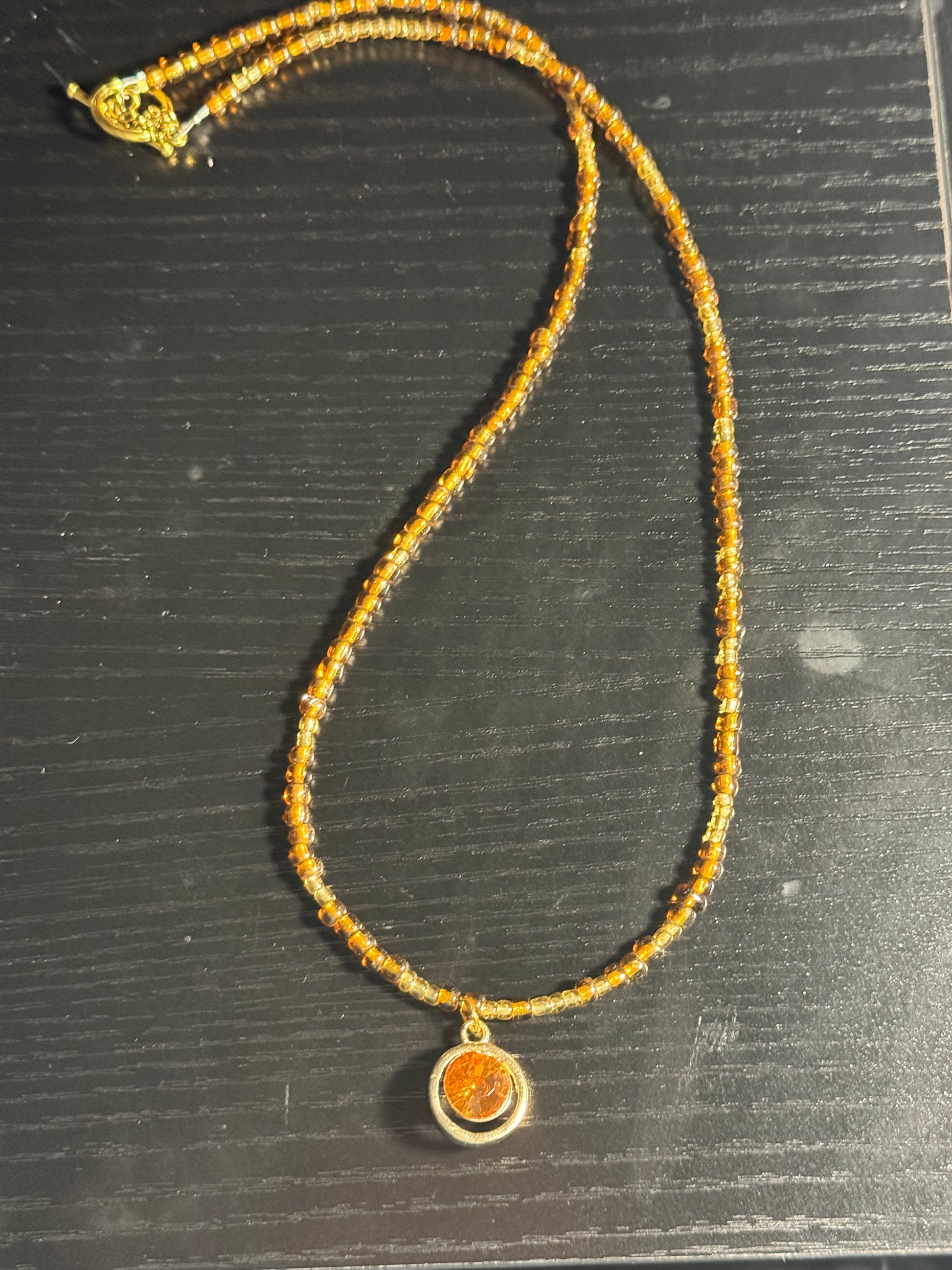 Simple but classy necklace with faux crystal pendant. Made with flexible beading wire and nickel free hardware.